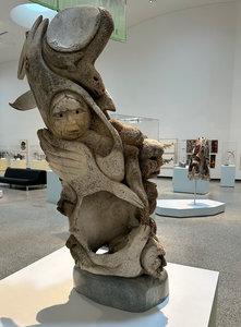 D’abord, l’impressionnante exposition Inuit Sanaugangit: Art Across Time, panorama chronologique (sur plus de 2000 ans!) et esthétique de l’art de l’Arctique circumpolaire, ce qui inclut donc des territoires situés non seulement au nord du Canada mais aussi en Alaska, en Sibérie et au Groënland. Beaucoup de sculptures bien sûr, mais aussi des oeuvres textiles, des dessins, des estampes. Une belle richesse de thématiques et de techniques.